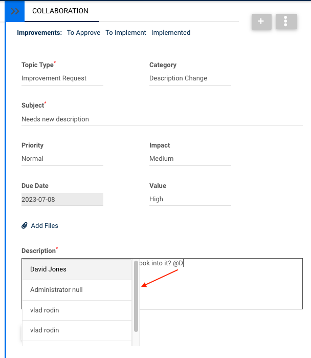 2. You can search users to tag in the description box by using an at sign and typing their username (e.g. @username).
