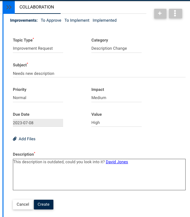 - Tag your colleagues in EPC collaboration topics, which will automatically send a message to them via Teams including a link to the EPC object and its name.