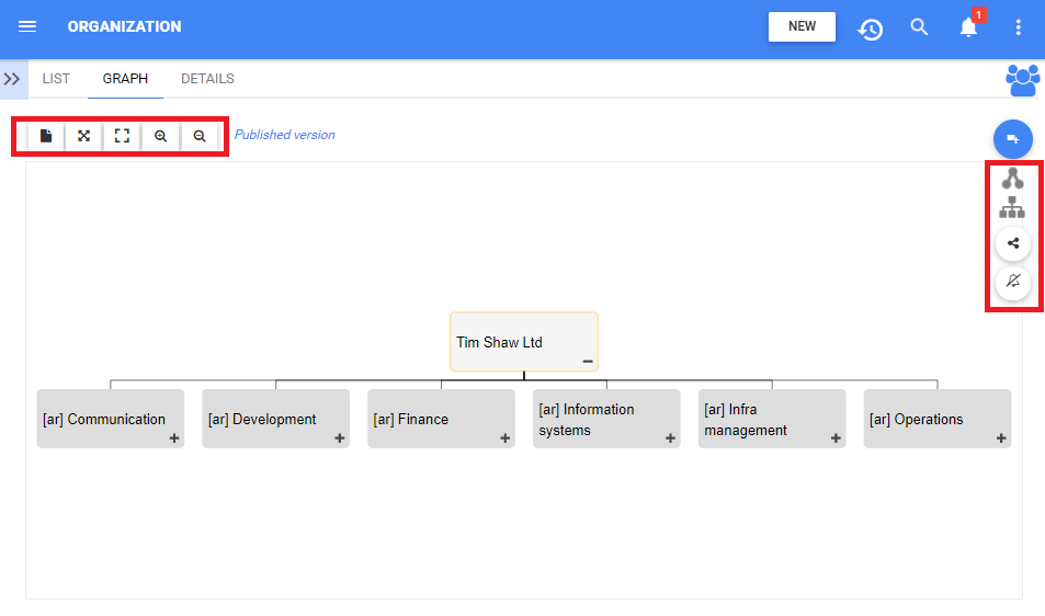 Navigation within the graph section is primary controlled by the toolbar at the top of the page. The toolbar is divided into 2 sections.