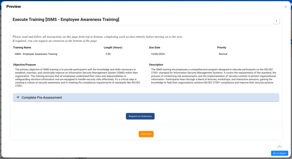 Click on the name of the desired training in the list to be redirected to the object to which the training is associated. - Develop the Training Task: