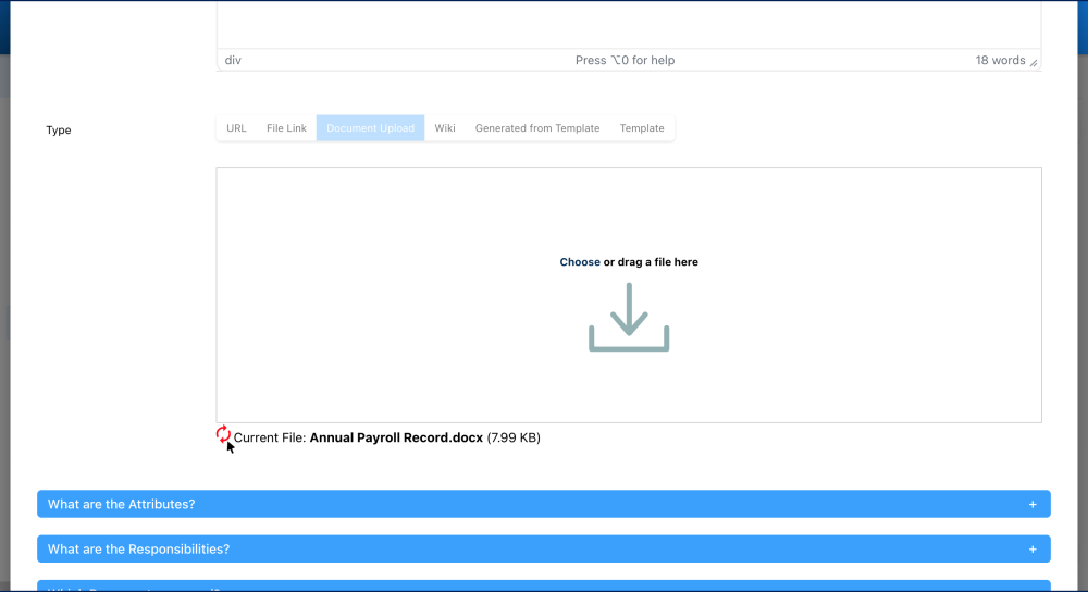 A new icon has been introduced to clearly indicate that users can replace previously uploaded files. Clicking this button will open a window where users can browse and select a new file.