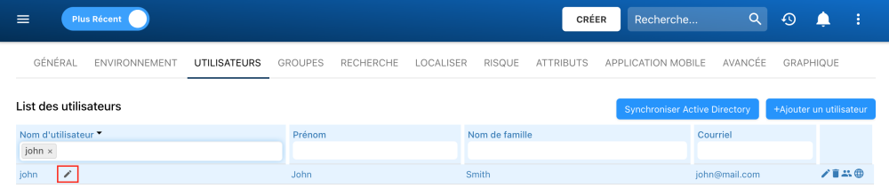 - La sélection de cet élément ouvrira la page d’édition complète de l’utilisateur.