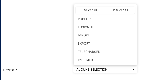 - Télécharger et Imprimer : Ces autorisations sont attribuées à chaque utilisateur par défaut, mais peuvent être révoquées.