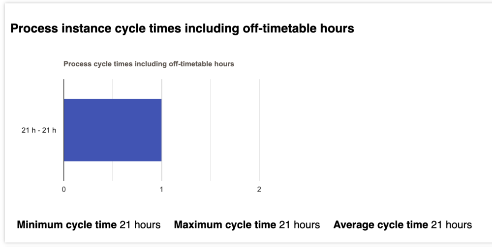 - Les temps de cycle dans les horaires ne comptent que le temps de travail des ressources. Ils omettent les week-ends, par exemple. Dans les résultats du simulateur, recherchez “Temps de cycle d’instance de processus, y compris les heures hors horaire”