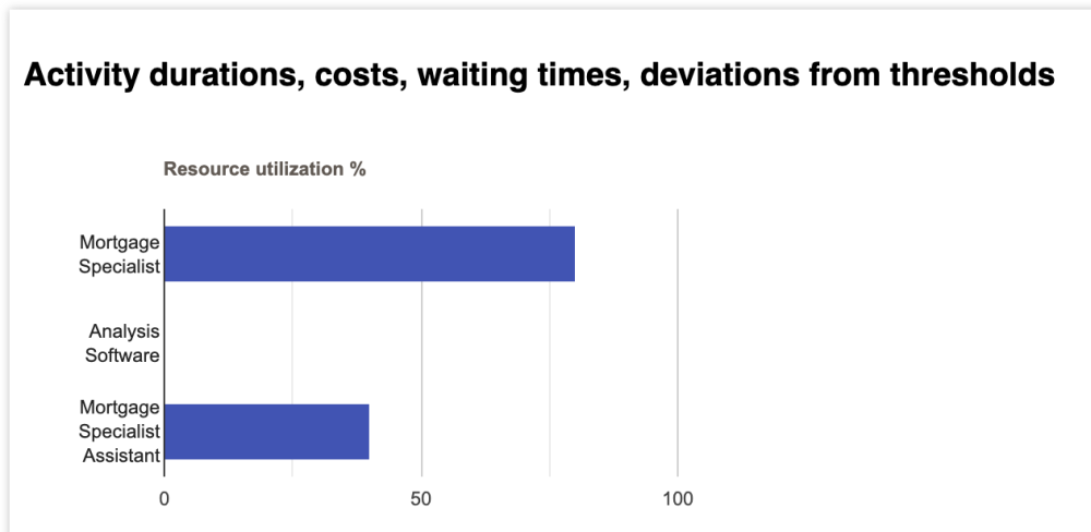 Il s’agit peut-être de la section la plus utilisée de tous les KPI, vous indiquant le pourcentage d’utilisation de vos ressources. Il vous indique combien de temps chaque ressource a été occupée pendant votre scénario. À titre indicatif, si votre ressource ou votre actif a été occupé pendant plus de 80 % du temps de traitement, il est fort probable que les délais d’attente commenceront à s’accumuler et à affecter la ressource elle-même ou la satisfaction du client, ce qui n’est pas viable pour un processus métier réussi. .