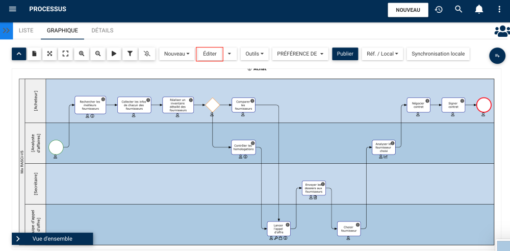 1. Accédez à la page Graphique d’un processus source localisé et cliquez sur “Éditer”.