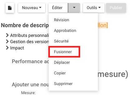 Les objets qui ont l’option « Fusionner » sont les suivants: