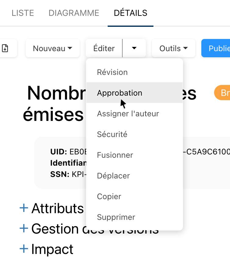 Pour savoir comment approuver un objet, veuillez vous référer à ce sujet.