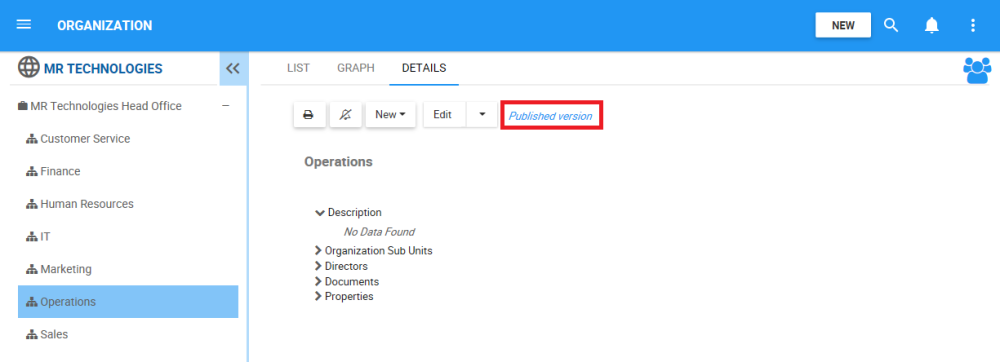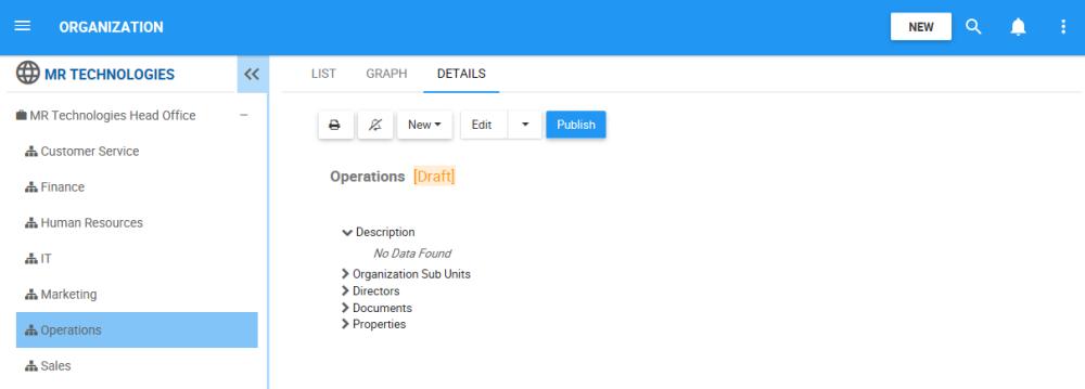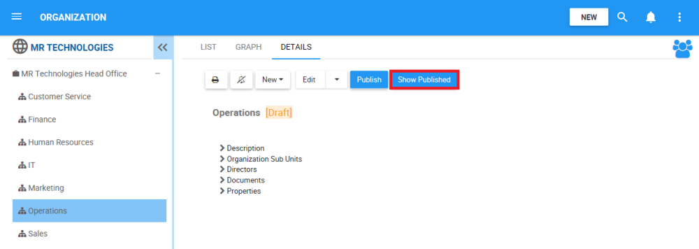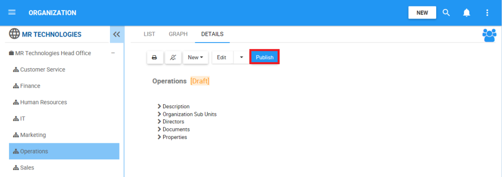 - Le bouton Publier sera disponible pour les objets brouillons à la fois sur l’onglet Graphique et sur l’onglet Détails