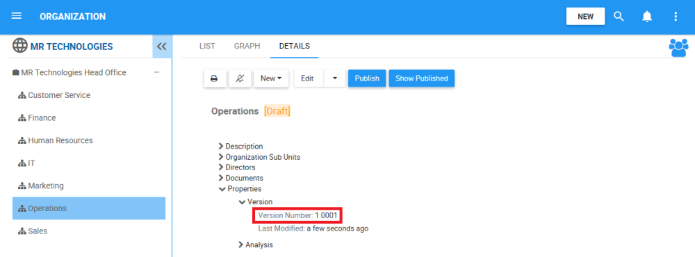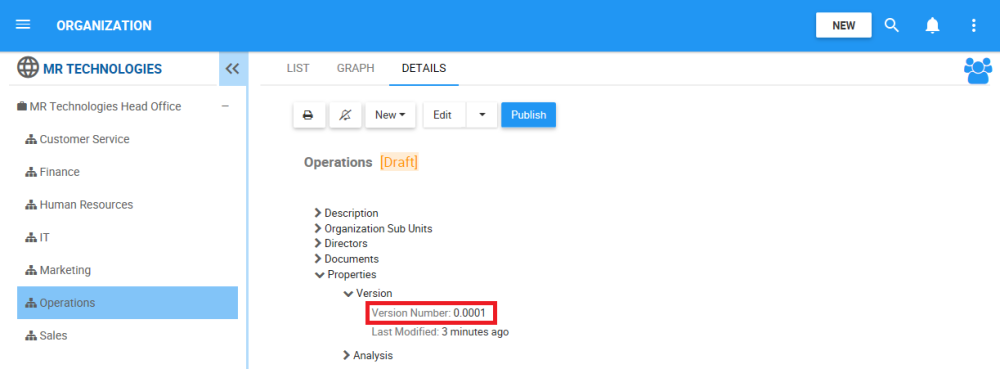 - Si l’objet est un brouillon, le numéro de version aura une valeur numérique décimale. La valeur décimale augmentera lorsque de nouvelles versions sont créées.