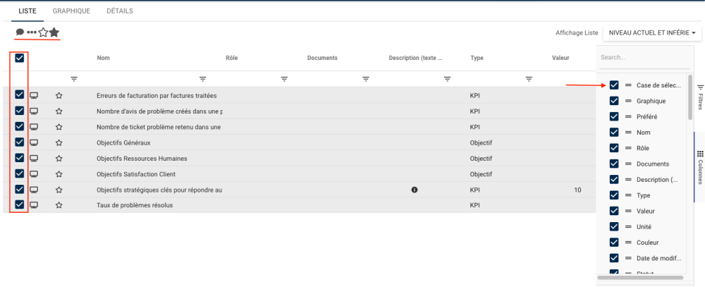 1. Accédez à la page Liste de votre choix et assurez-vous que les cases à cocher de sélection sont activées. Sélectionnez les objets souhaités et l’icône à trois points apparaîtra sur l’en-tête de la page.