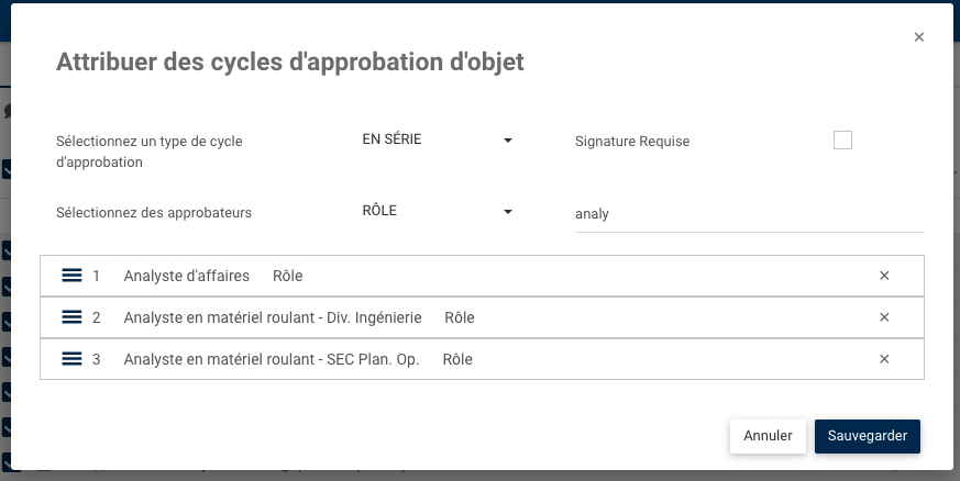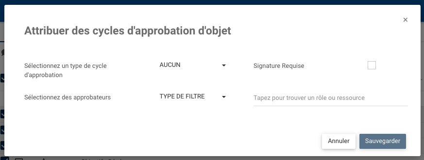 3. Dans le formulaire “Attribuer des cycles d’approbation d’objet”, vous pouvez :