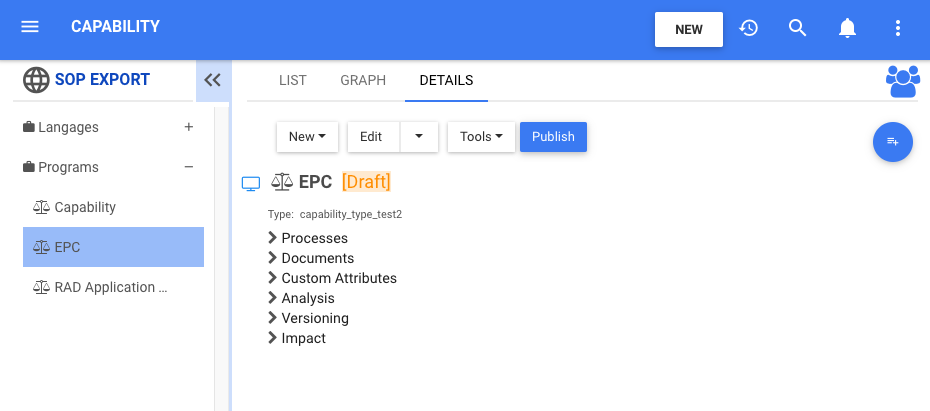 4. The new Capability “EPC” is now inside of the “Programs” Set. This Capability is currently a draft. To learn how to publish Capability objects, click here