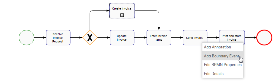 Les modélisateurs Web peuvent affecter des événements en bordure aux formes de sous-processus et de tâche tout en travaillant sur le Mode d’édition de graphique