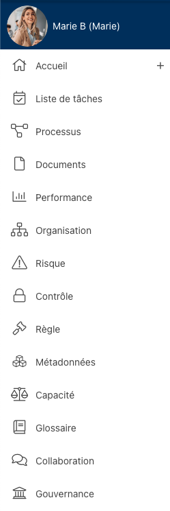 Pour accéder au menu EPC, utilisez l’icône en haut à gauche de la page. Les 13 modules EPC différents sont les suivants :