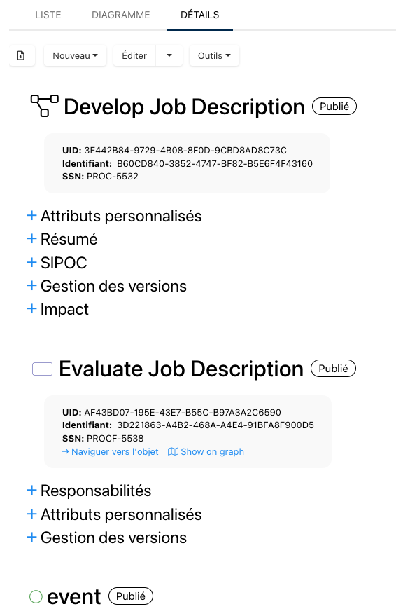 4. Une fois le processus publié, vous recevrez une notification. ‘Publié’ sera désormais écrit en haut de la Vue des détails de l’objet.