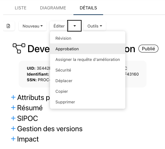 ; choisissez ‘Approbation’ dans le menu déroulant généré.