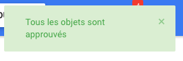 8. Si l’utilisateur a approuvé les objets, une notification de réussite de l’approbation apparaîtra et les objets approuvés disparaîtront de la liste des éléments en attente