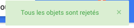 9. Si l’utilisateur a rejeté les objets, une notification de réussite du rejet apparaîtra et les objets rejetés disparaîtront de la liste des éléments en attente