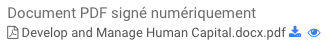 5. Une fois le document approuvé, la case approuvé apparaît, surlignée en vert. Là, l’utilisateur peut trouver le document PDF signé numériquement montrant la signature de l’approbateur sur la deuxième page.