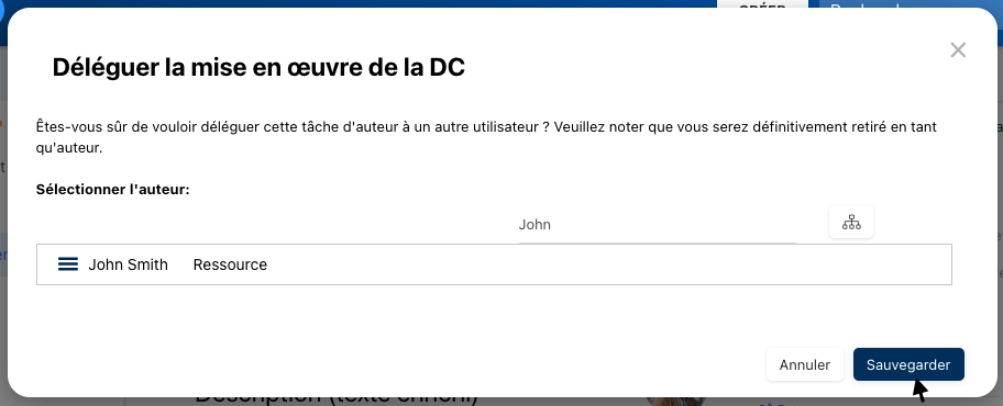 - Cliquez sur ‘Sauvegarder’ pour finaliser la délégation. L’utilisateur délégué deviendra alors le nouvel Auteur.