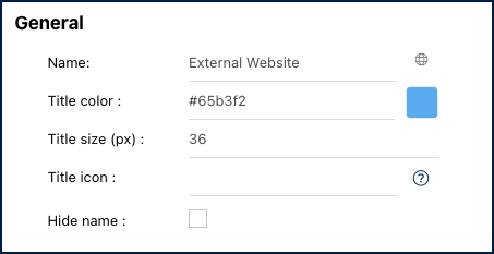 - Masquer le nom : Pour masquer le nom du widget lorsqu’il est affiché sur la page d’accueil, cliquez sur cette case à cocher.