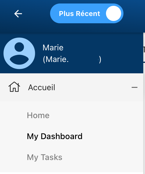 Pour accéder à la page Mon tableau de bord, vous pouvez utiliser le menu arborescent à gauche