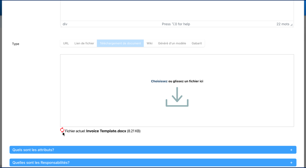 Une nouvelle icône a été introduite pour indiquer clairement que les utilisateurs peuvent remplacer les fichiers précédemment téléchargés. En cliquant sur ce bouton, une fenêtre s’ouvrira, permettant aux utilisateurs de parcourir et de sélectionner un nouveau fichier.
