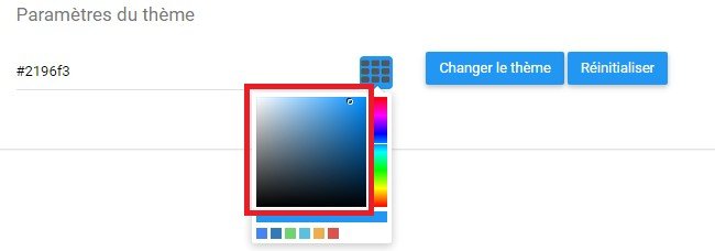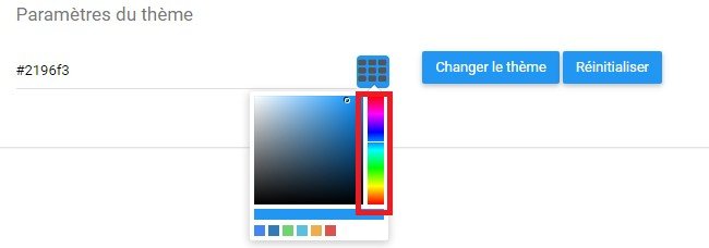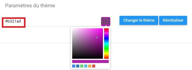 Le rouleau de thème permet aux utilisateurs d’éditer la couleur affichée par leur Application Web EPC. La couleur spécifique affichée est représentée par un code alphanumérique dans la zone de texte.