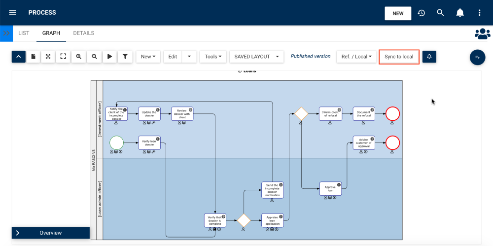 Users can enable the sync in one click. First, make sure that the process is already localized, to learn how to localize a process, click here.