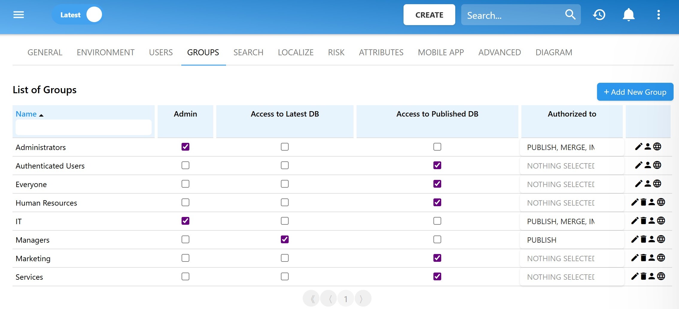 - Go to System Admin → Groups tab