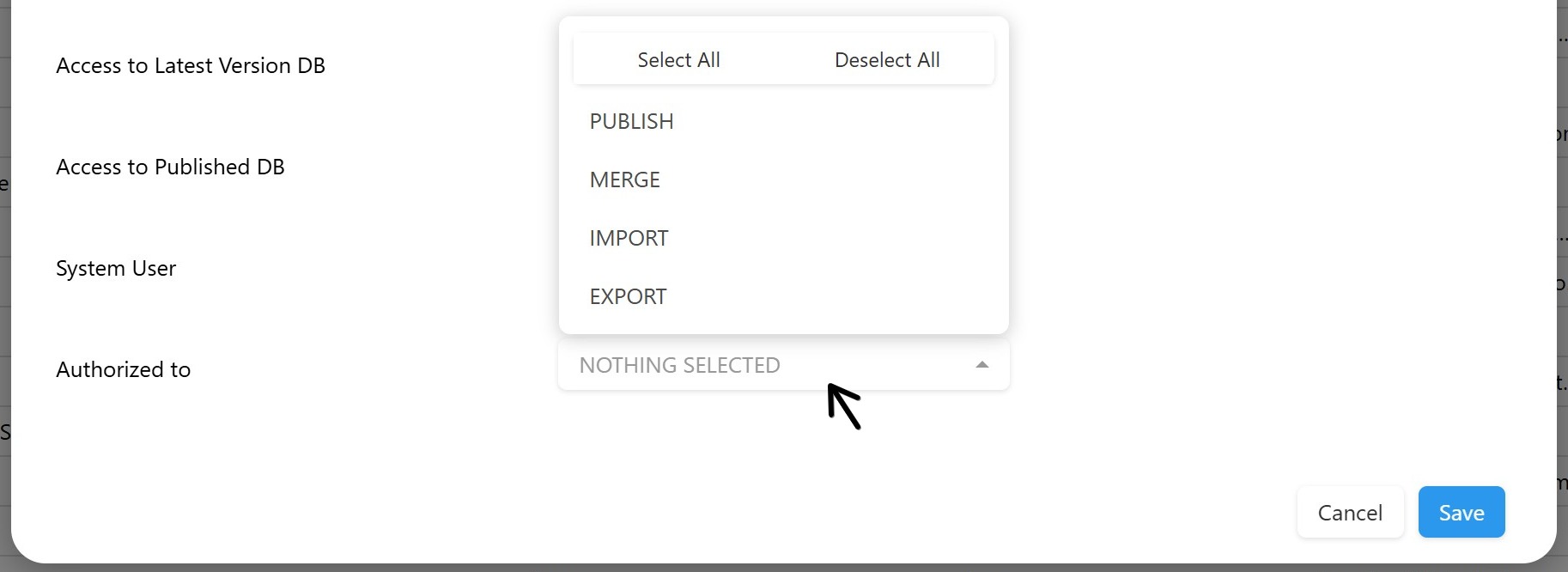 Use the Authorized to dropdown to select the authorizations for the user