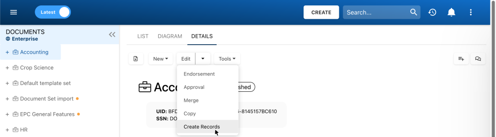 - Click on the Edit dropdown, then select Create Records from the menu.