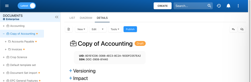 Users with Read Latest security permissions can also create records, provided they have Write permissions in at least one folder within the Document module. This allows them to duplicate templates or documents, for example, within their authorized areas, enabling edits to suit their specific needs.