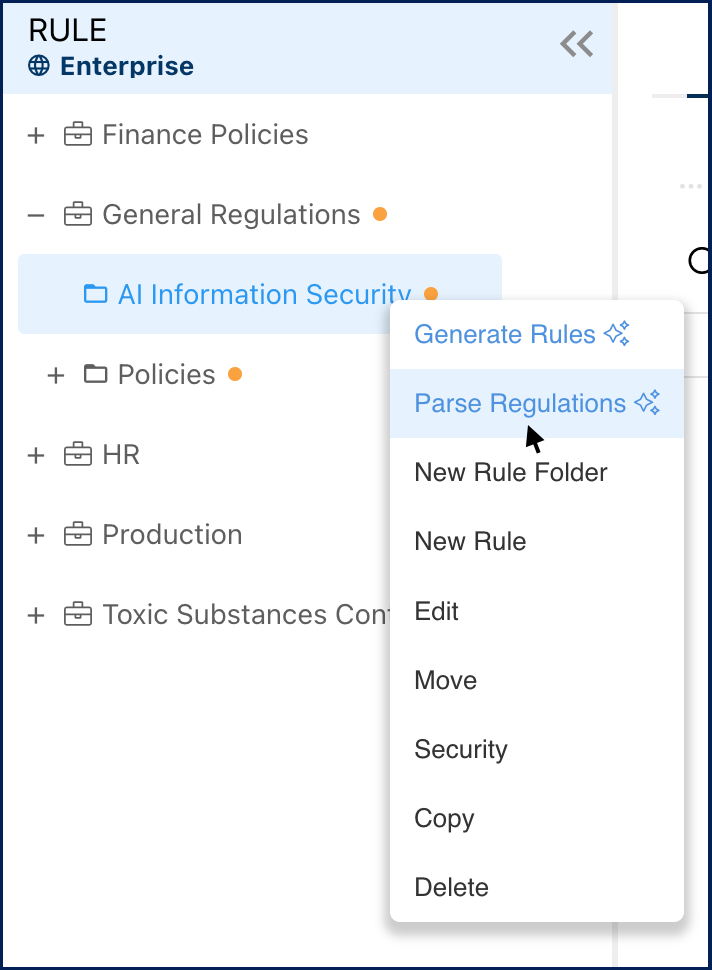 - Select ‘Parse Controls’ or ‘Parse Regulations’ from the menu.