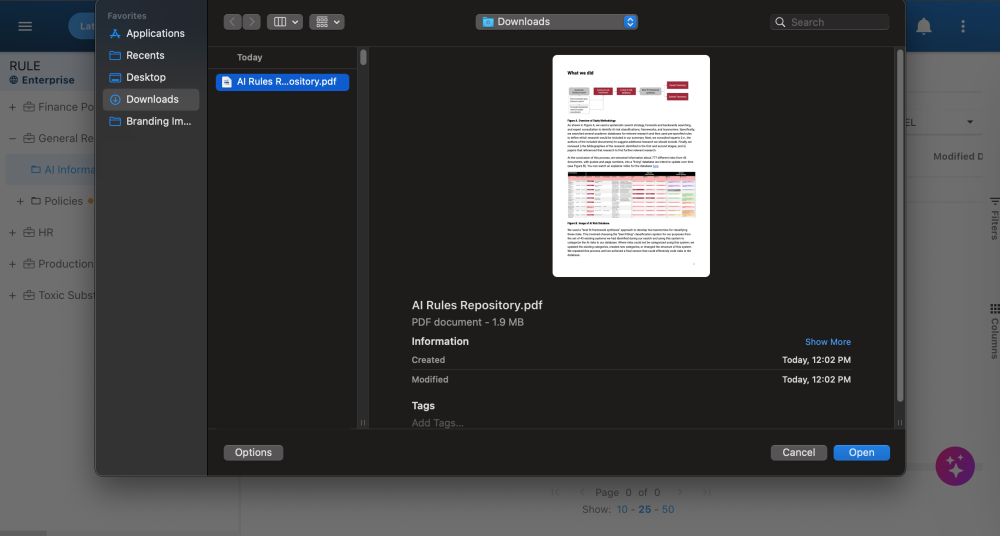 This AI feature enables the direct conversion of regulatory files into actionable EPC rules and controls. This streamlines the integration of regulatory requirements into the organization’s database, eliminating the need for manual data entry or the use the Parser application.
