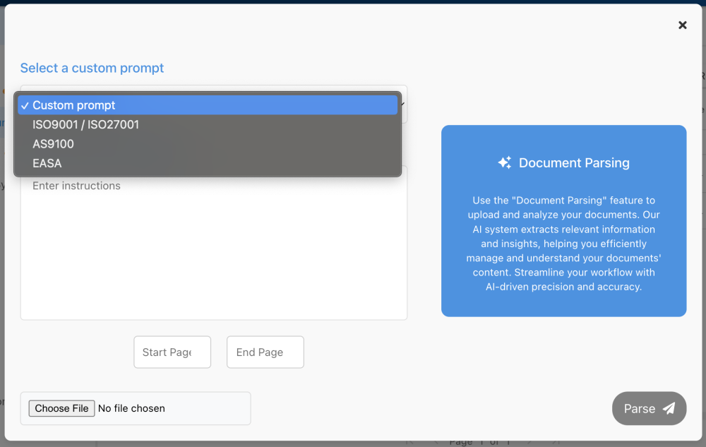 - ‘Custom prompt’ allows you to specify instructions for how the text should be parsed, such as text patterns, keywords, or specific sections to identify.
