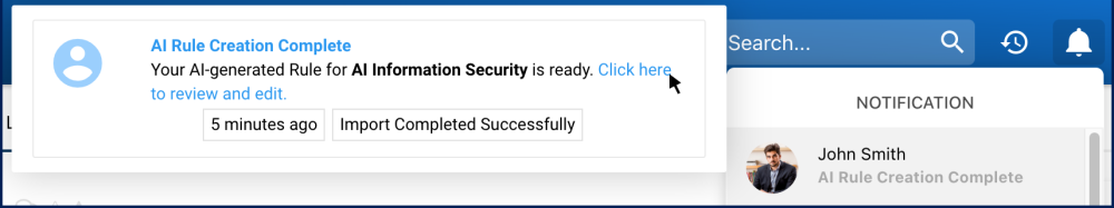 - Navigate to the Rule or Control module.