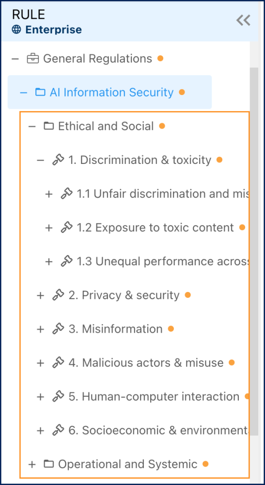 - The regulations or controls will be visible and accessible in the tree. Review and edit the content as needed.