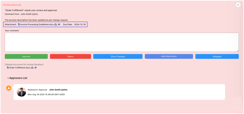 It is now possible to set a due date by which assigned approvers must complete their tasks.