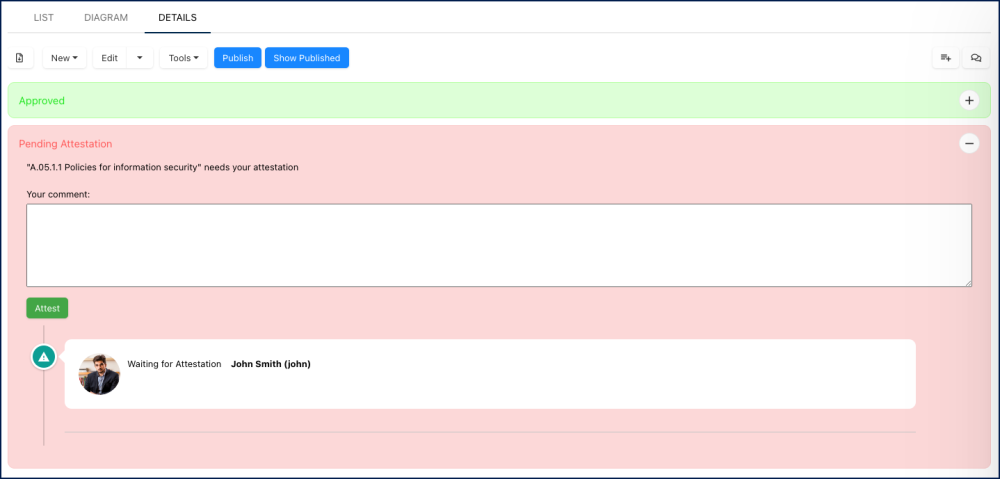 We have introduced a new Attestation cycle that follows the approval cycle and precedes the publication of the object.