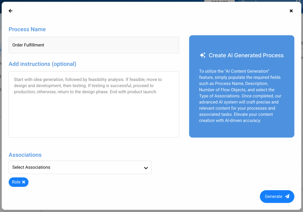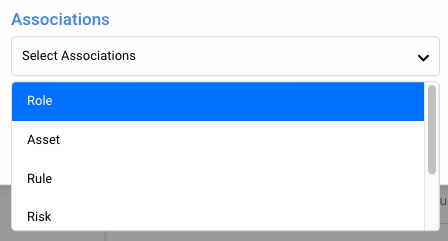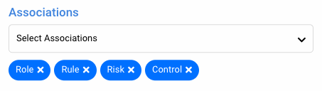 - In the Associations dropdown, you can select the objects that the AI will create and associate to the process content, including Roles, Assets, Rules, Controls, Risks, and KPIs.