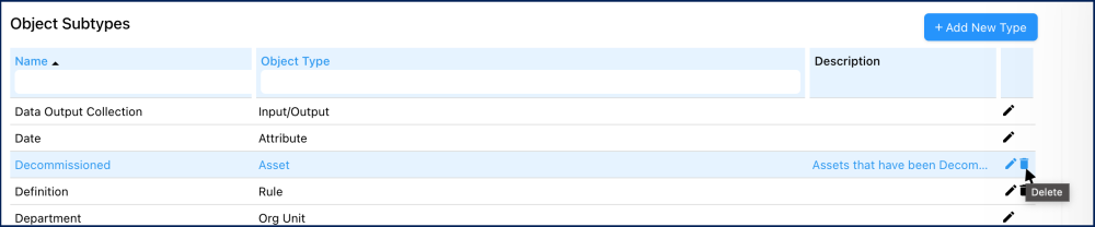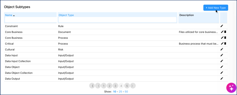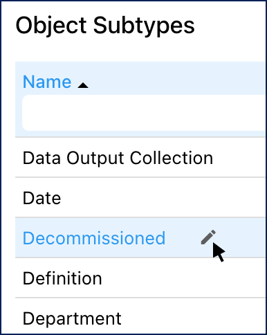 Administrators can customize the names of subtypes and specify which subtypes are applicable to each object type. EPC comes with a default list of object subtypes, which administrators can easily modify—adding new subtypes, editing existing ones, or removing unnecessary entries.