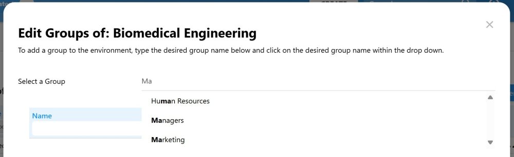 When you need to give a user or group access to an environment, this method allows you to set their permissions and, if needed, grant Environment Admin access. This ensures the right people can work effectively while keeping sensitive areas protected.