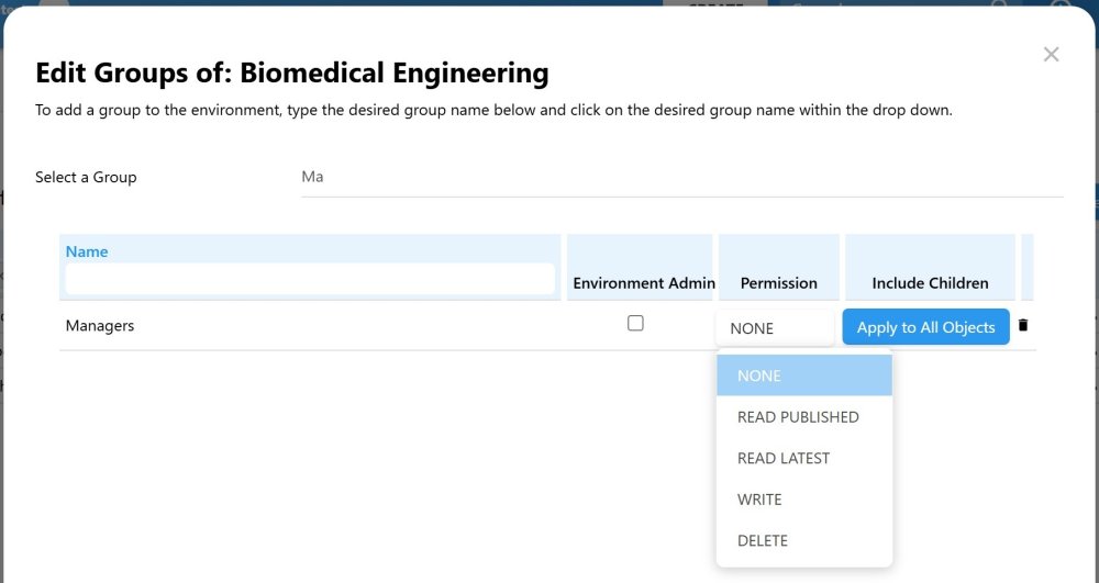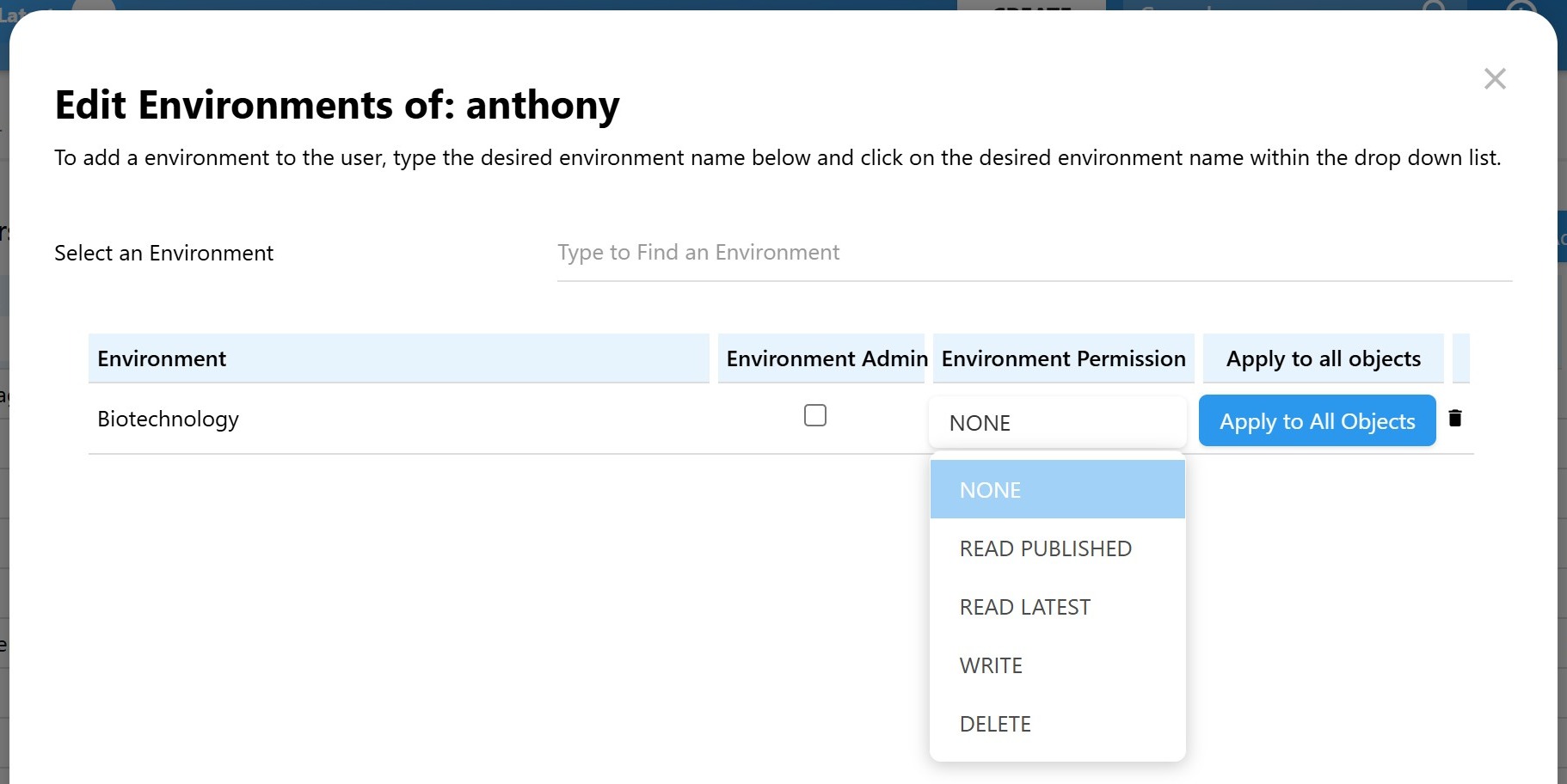- To apply these permissions to all objects within the environment, click Apply to All Objects.