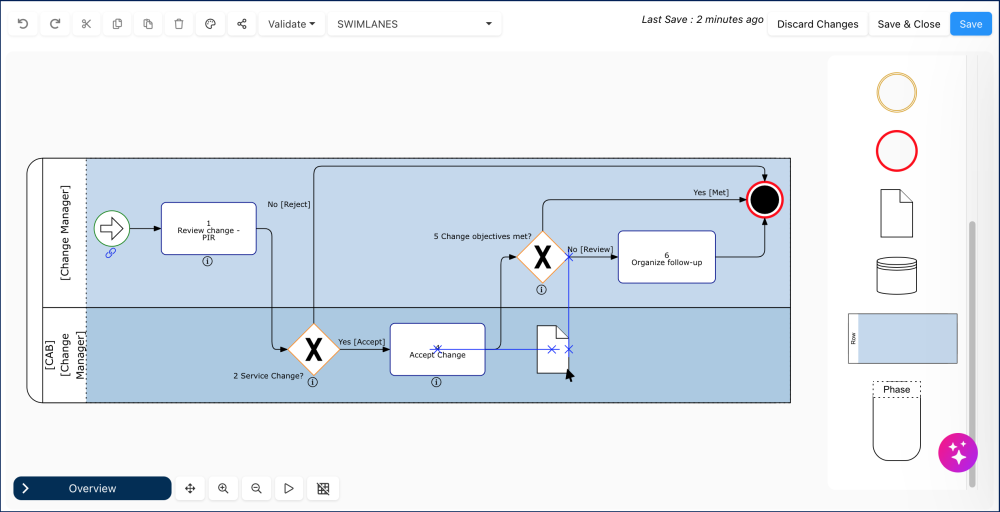 As process mappers and viewers, enhancing the richness of information significantly improves the overall understanding of process maps. One essential element in this enhancement is visual information. To address this need, Modelers have the ability to add an Artifact and associate one or more Documents or Assets to display how these resources are used or affected during the execution of a process.