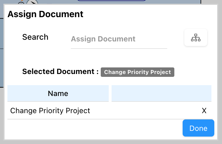 - After associating the document(s) or asset, click on the Done button to finalize the process.
