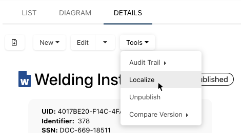 For example, a manufacturing process may vary from country to country due to differences in customer preferences, legal requirements, or other factors. With localization, users can create local copies of objects making slight adjustments without the need to completely recreate them.