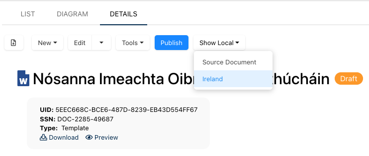 - Select the localized version you want to view by clicking on it.
