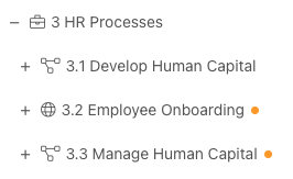 Users can easily locate a process that has localized copies within the tree, as it has a